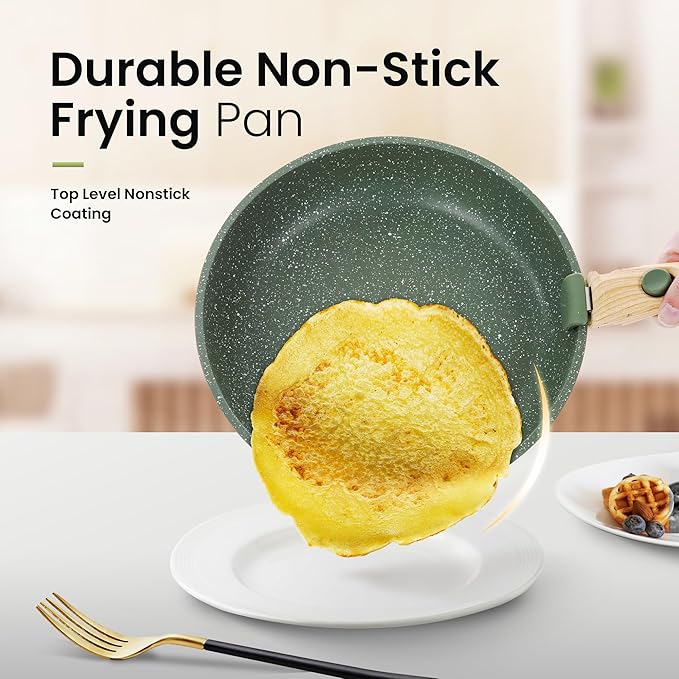 Kitchen Academy Removable Handle Pots and Pans Set - 10 Pieces Green Cookware Set with Removable Handle, RV Induction Cookware Set for Camp