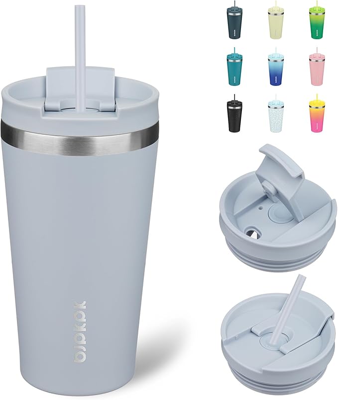 BJPKPK 18oz Stainless Steel Insulated Tumbler With lid And Straw Travel Coffee Thermal Tumblers Cup For Women And Men,Modern Blue