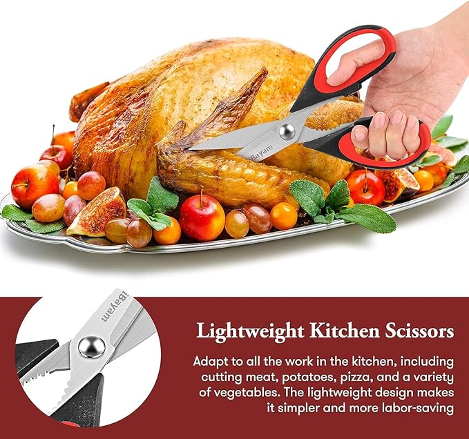 About This 1. Versatile kitchen scissors: These all-purpose shears are perfect for food, meat, vegetables, chicken, poultry, fish, herbs, seafood,... Read more