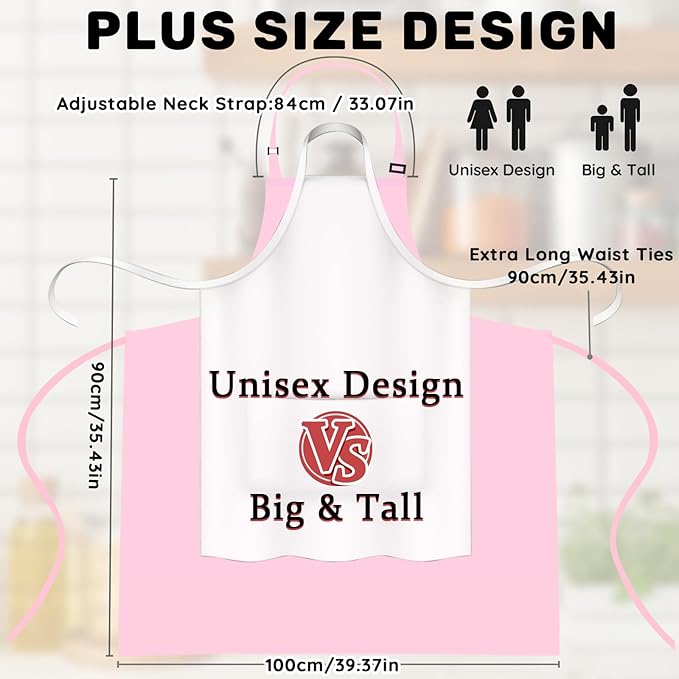 • 【Plus Size】The upgraded apron adopts larger size (35.43*39.37inch), great for for taller and oversize people. Large coversarea give you good protection against oil water stains.
