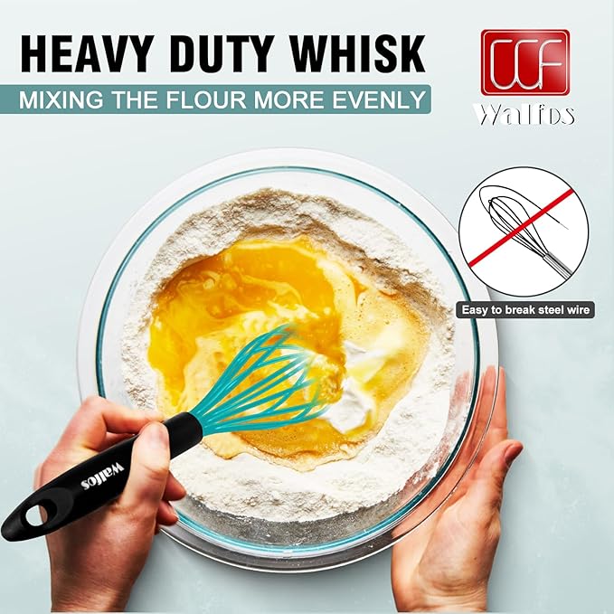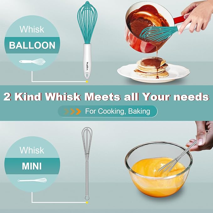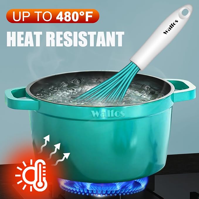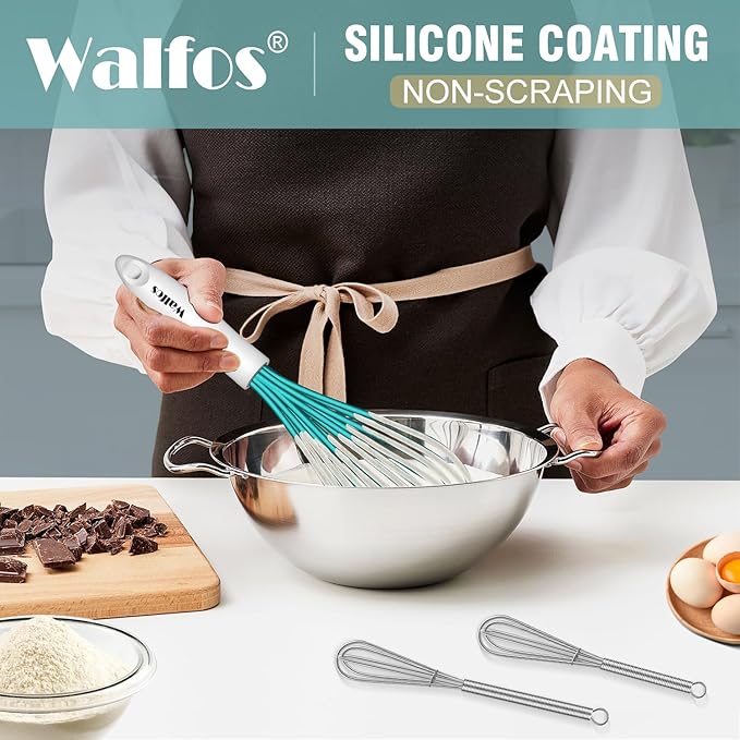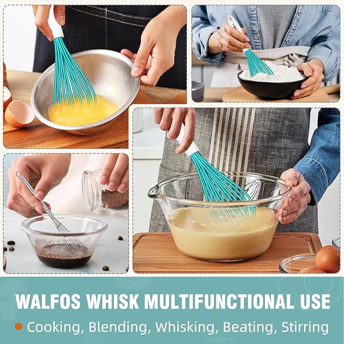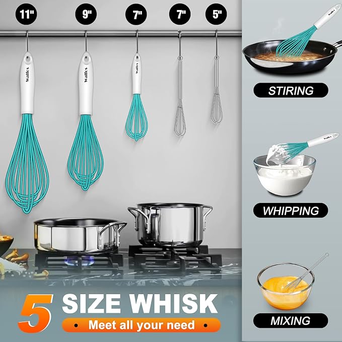 Walfos Whisk,Silicone Whis, Non Scratch Coated Wisking tool silicone set of 5,BPA Free and Heat Resistant 480°F.Premium for Whisking, Blending, Frothing, Beating.(Blue)
