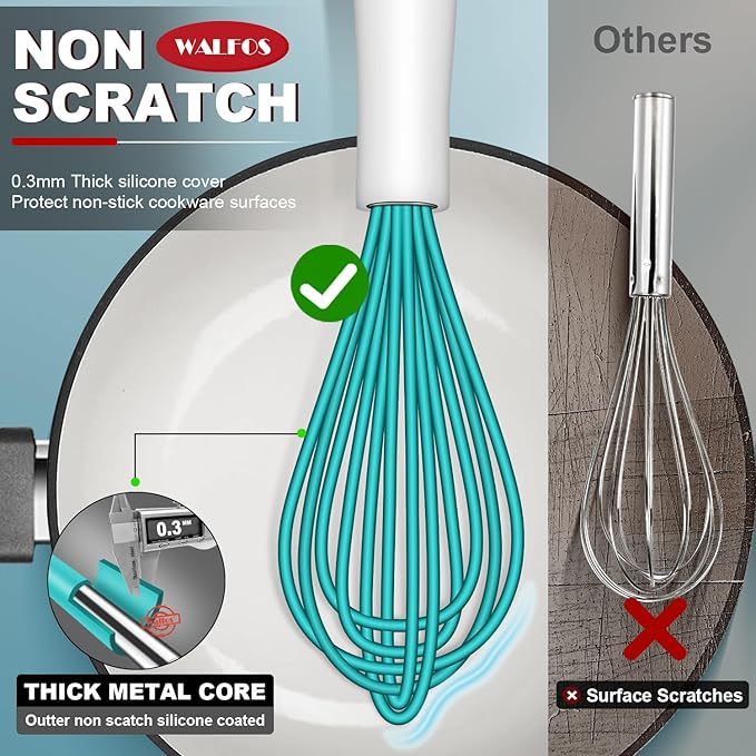 About This THICKENED SILICONE PROTECTIVE COVER, STOP SCRATCHING YOUR COOKWARE - Walfos silicone whisk is made of 1.65 mm stainless... Read more