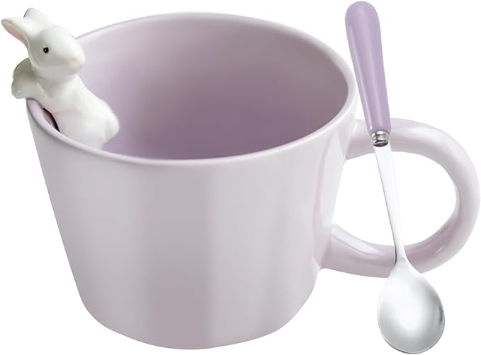 BigNoseDeer Cute Easter Bunny Mugs with 3D Rabbit Inside Ceramic Bunny Coffee Mug with Spoon Cute Gifts Easter Gifts for Women Kids 12oz (Purple)