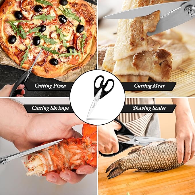 iBayam Stocking Stuffers for Men, White Elephant Gifts for Adults, Kitchen Scissors All Purpose Kitchen Shears 8.5" Cooking Scissors with Sheath, Black Accessories, Gadgets Utensils