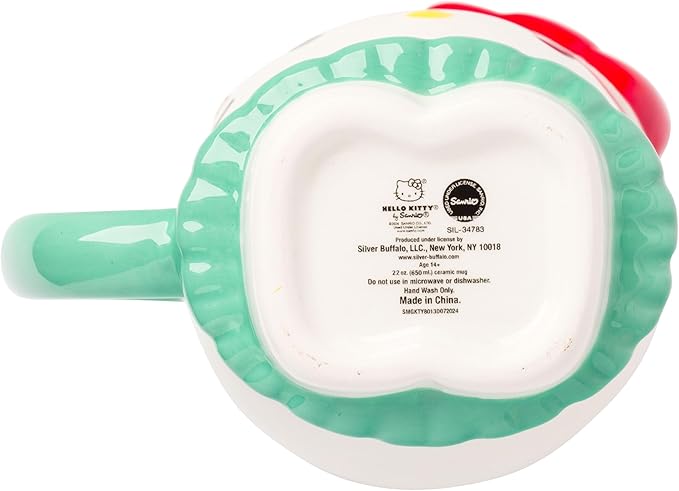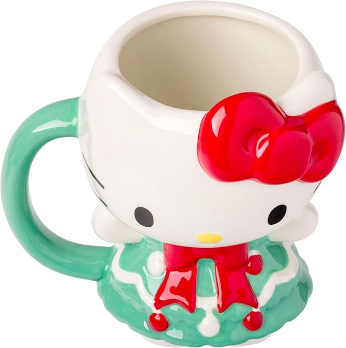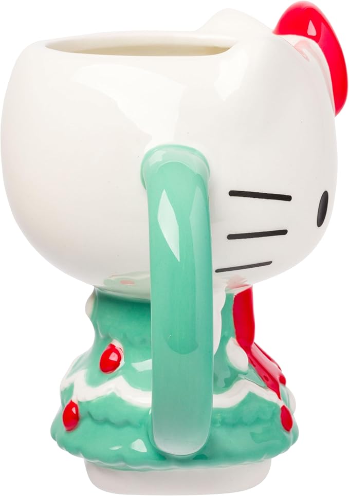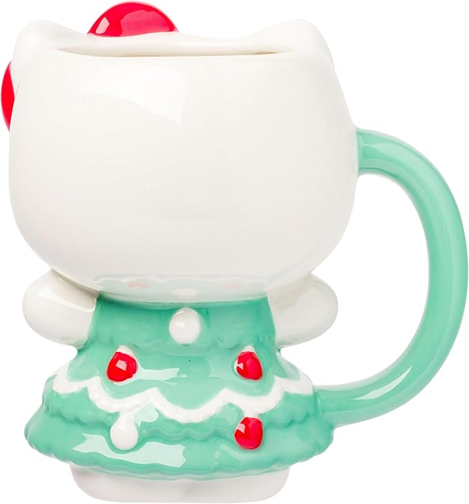 Silver Buffalo Sanrio Hello Kitty Holiday Christmas Tree Dress 3D Sculpted Ceramic Mug, 20 Ounces