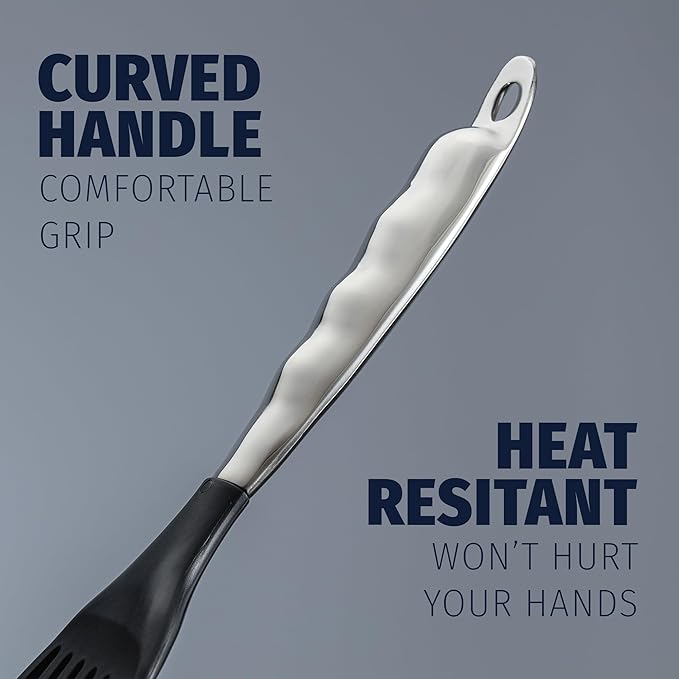 Zulay Kitchen Stainless Steel Fish Spatula - 12.8” Flexible Slotted Turner for Cooking & Frying - Ergonomic Handle, Non-Stick Safe & Dishwasher Safe Kitchen Utensil for Everyday Use