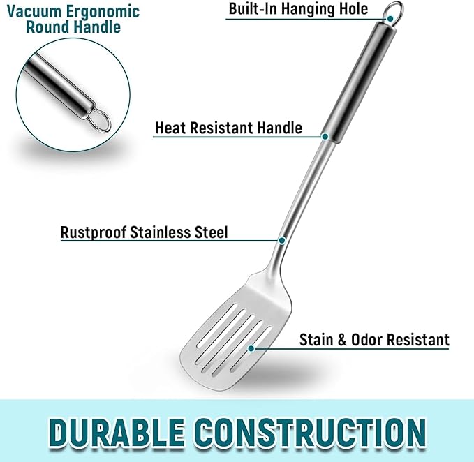Pleafind 2-Pcs Solid & Slotted Spatula Set, 304 Stainless Steel Spatula, Metal Spatulas, Wok Utensils, Cooking Utensils, Wok Spatulas for Home, Kitchen and Restaurant, Dishwasher Safe