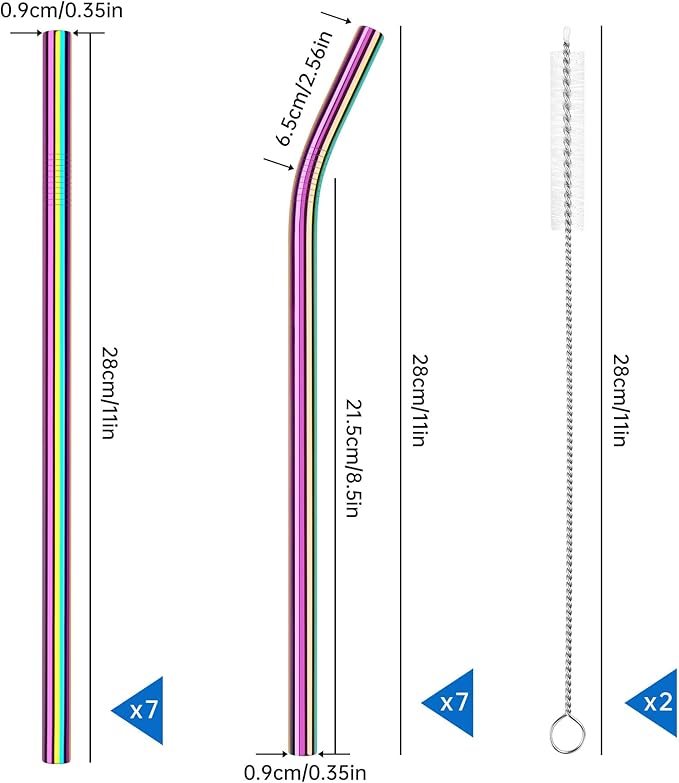 About This š¹ Exceptional Value Set - This fantastic package includes 7 straight straws (11" x 0.35"), 7 curved straws... Read more