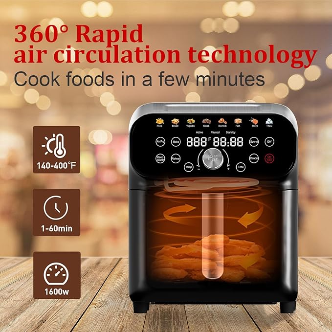 5QT Compact Air Fryer, 9-in-1 with Smart Digital Color TouchScreen Air Fryers View Window, Air Fry, Roast, Bake, Broil, Reheat, Dehydrate, 12 Presets,Less Oil Nonstick & Dishwasher Safe Basket