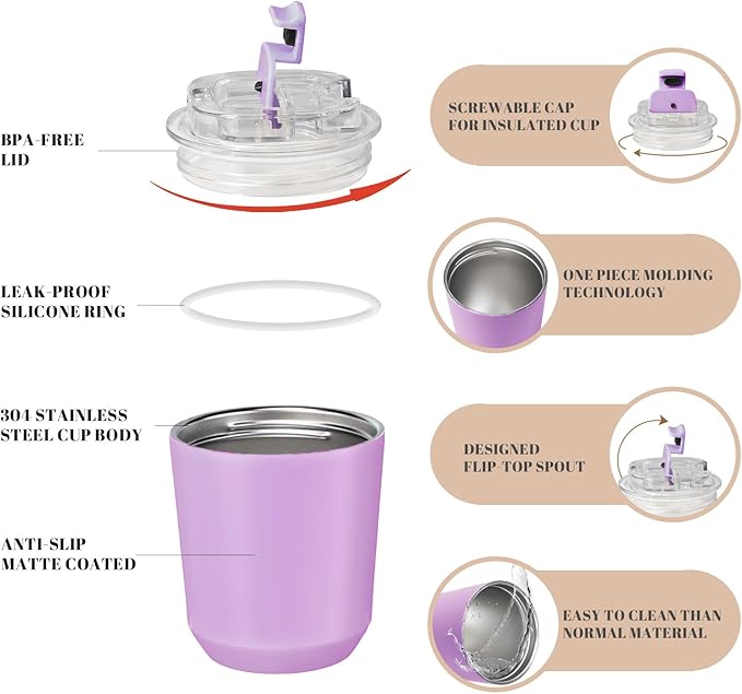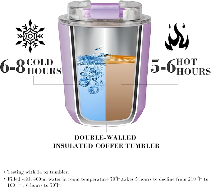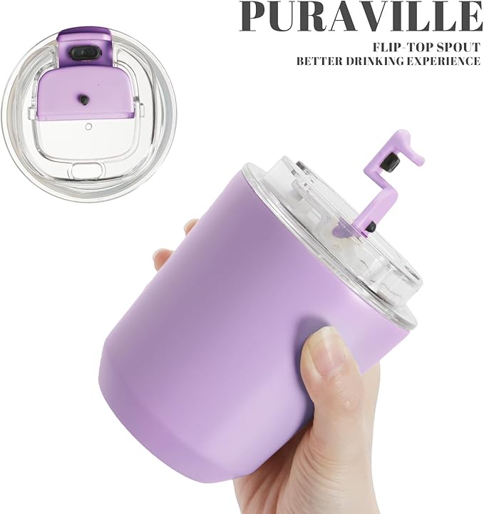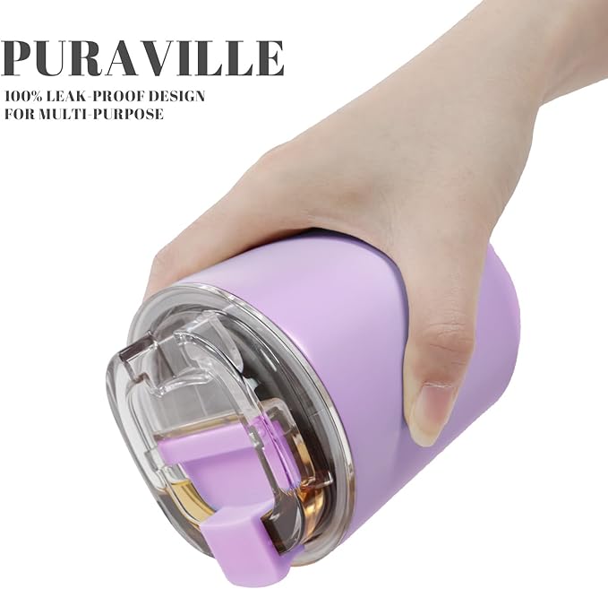 Puraville Insulated Tumblers with Lid, 10 oz Travel Coffee Mug Stainless Steel Vacuum Cup, Leak Proof Reusable Double Walled Coffee Tumbler for Iced and Hot Drinks, Lilac
