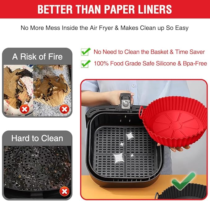 Silicone Liners for Ninja Air Fryer AF101/161/150, Compatible with COSORI/Gourmia/PowerXL/Instant Essentials/Fabuletta/Chefman/Dreo/Ultrean Air Fryer 3-5QT