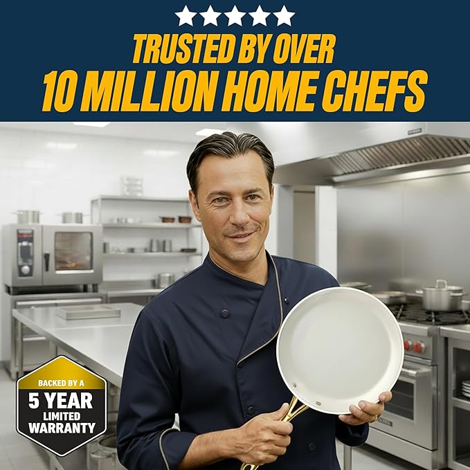 Gotham Steel 12 Pc Ceramic Cookware Set Nonstick, Ceramic Pots and Pans Set Non Stick with Steamer for Cooking, Non Toxic PFOA PFOS Free, Premium Stay Cool Handles, Oven & Dishwasher Safe