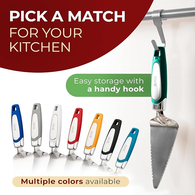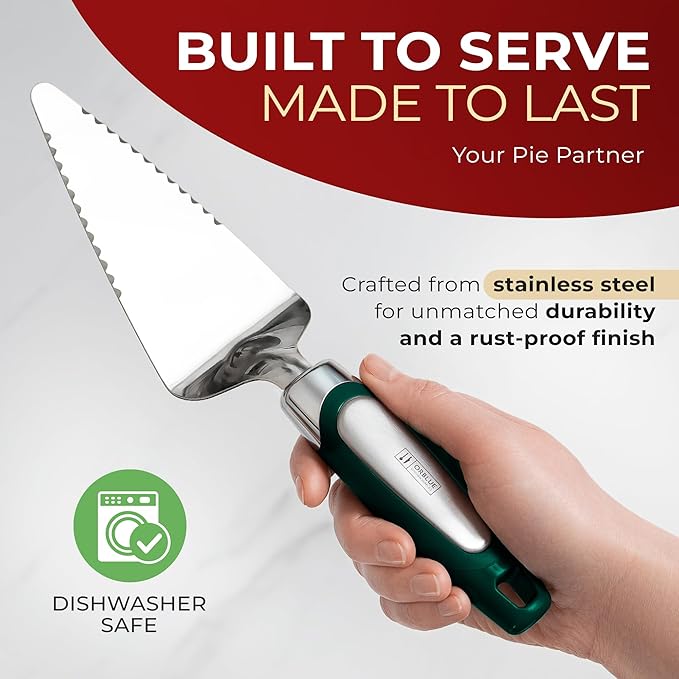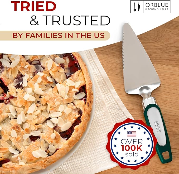 Orblue Pie Server, Essential Kitchen Tool, Serrated on Both Sides, Great for Right or Left Handed Chef, Stainless Steel Flatware, Cake Cutter, Dark Green