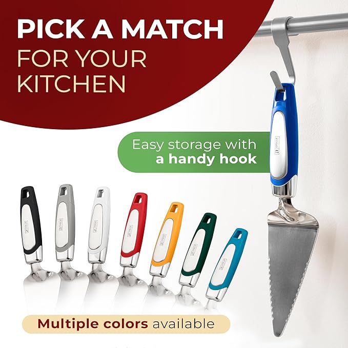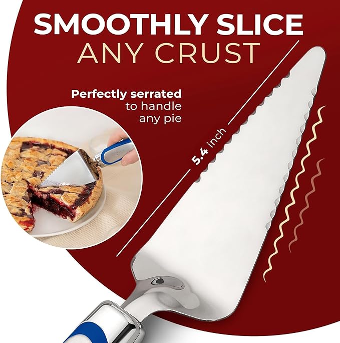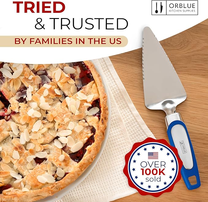 Orblue Pie Server, Essential Kitchen Tool, Serrated on Both Sides, Great for Right or Left Handed Chef, Stainless Steel Flatware, Cake Cutter, Royal Blue