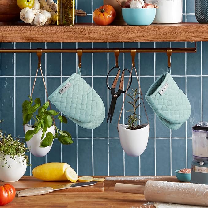 KitchenAid Asteroid Mini Oven Mitt 2-Pack Set, Mineral Water Aqua, 5.5"x8"