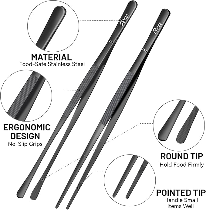 About This FOOD-GRADE STAINLESS STEEL: The heavy duty Hotec cooking tweezers built with stainless steel, sturdy, heat resistance, anti-rust, anti-corrosion,... Read more