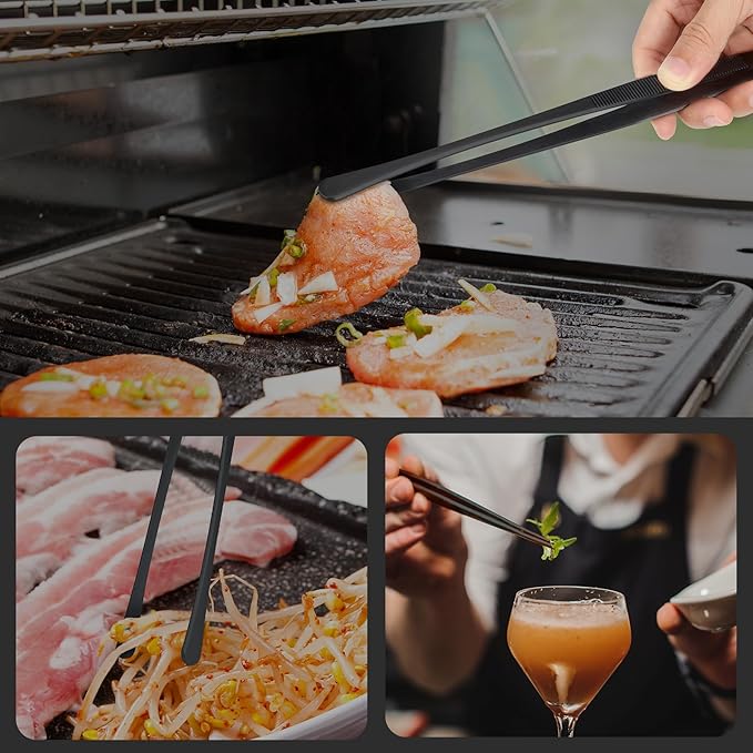 HOTEC Kitchen Tweezers Tongs Stainless Steel Professional Chef Tweezers, Set of 2-12inch Extra-Long Food Tongs for Cooking,Grill and Baking