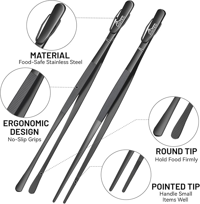 About This FOOD-GRADE STAINLESS STEEL: The heavy duty Hotec fine tweezers built with stainless steel, sturdy, heat resistance, anti-rust, anti-corrosion,... Read more