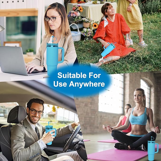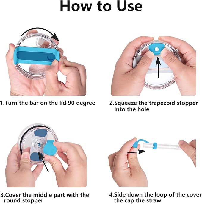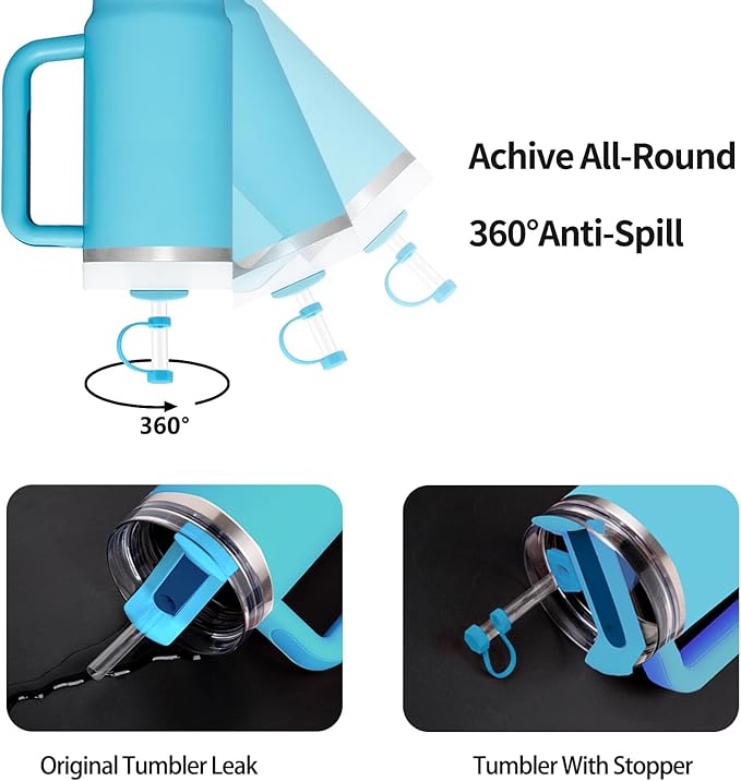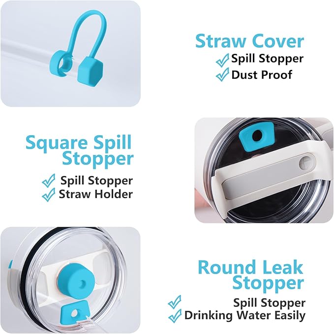 Silicone Spill Stopper Set Compatible with Stanley Cup 2.0 30oz & 40oz with Straw Cover (Set of 2, Pool Blue)