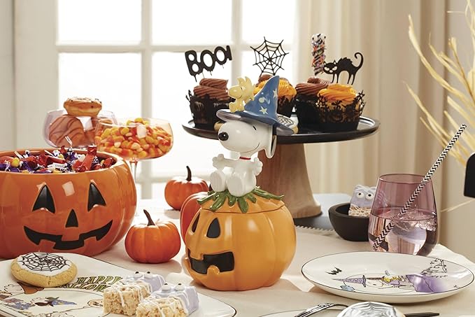 Lenox Serveware, The Great Pumpkin Hors D'Oeuvres Tray, Porcelain Tray, Halloween Decor Indoor, Hand Wash Only, Featuring Peanuts Design, Snoopy, Halloween Party Supplies (1 Piece, 13.75 x 7.75-Inch)