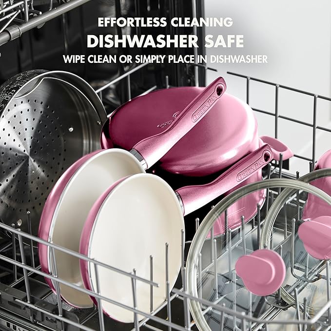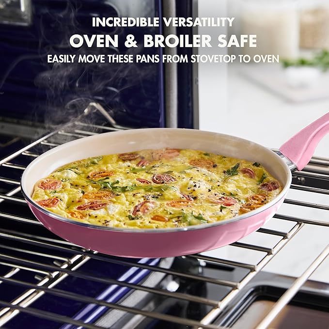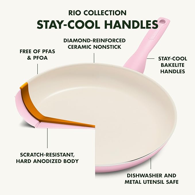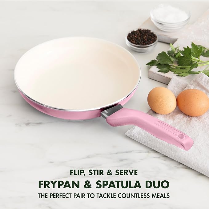 GreenPan Rio Healthy Ceramic Nonstick 8" Frying Pan Skillet and Silicone Spatula Set, Soft Grip Handle, Breaktfast Meal Set, PFAS-Free, Dishwasher Safe, Oven Safe, Pink