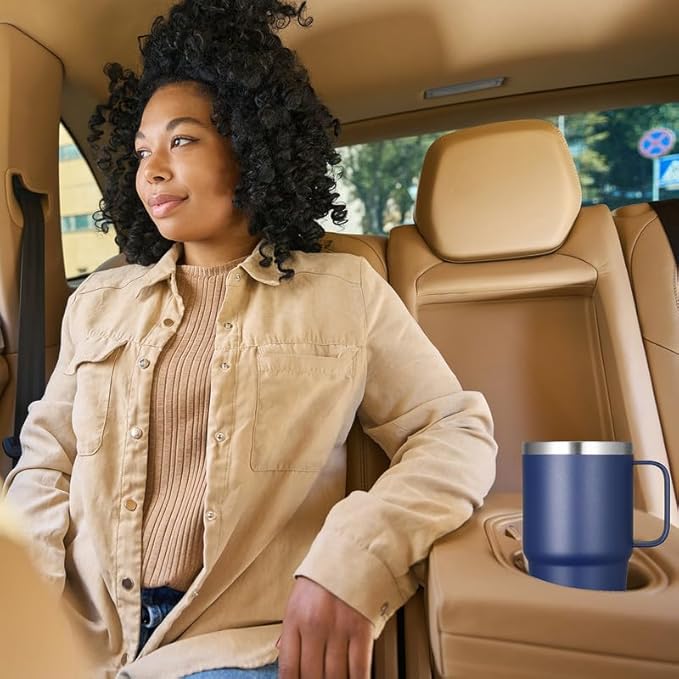 VEGOND 20 oz Tumbler Bulk with Handle Lid and Straw, Stainless Steel Insulated Travel Coffee Mug Set, Spill Proof Double Wall Metal Tumblers Cups, Powder Color Navy Blue 12 Pack