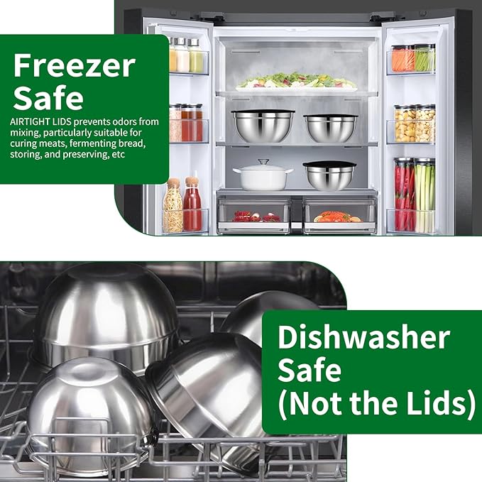 Mixing Bowls Set, 27PCS Stainless Steel Mixing Bowl with Lid Set, Large Nesting Bowls 7, 4.5, 3, 2.5, 2, 1.5QT, Measuring Cups and Spoons Baking Utensils Metal Bowl for Kitchen Prep