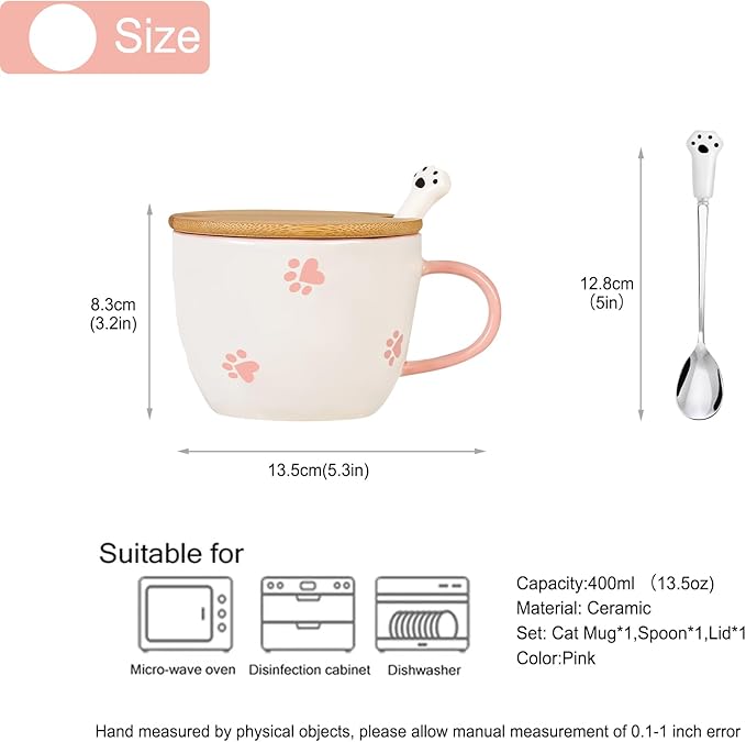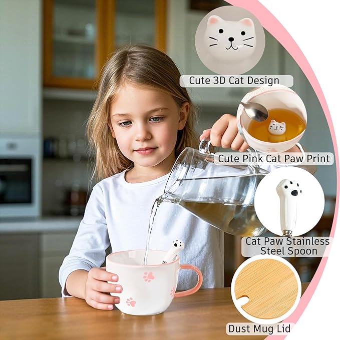 BigNoseDeer Kawaii Cat Mug with 3D Kitty Inside Cute Mugs Ceramic Tea Cup Coffee Mug Gifts for Women Girlfriend Kids White Elephant Gifts (13oz)