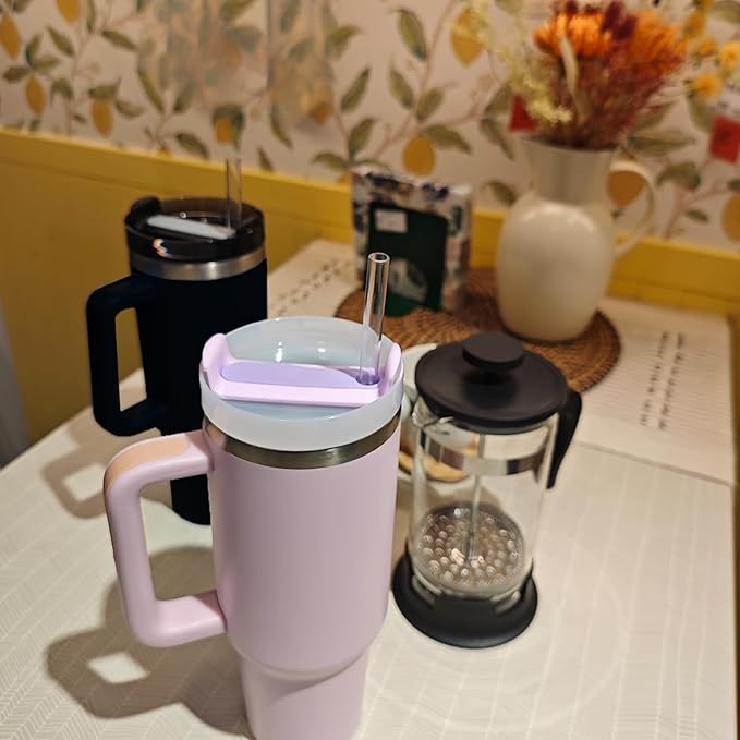 40 OZ Tumbler Lid Replacement Fit for Stanley Cup, 2 Pack Clear Replacement Lids Fit for Stanley Travel Tumbler, Spill Proof Tumbler Covers for Stanley Cup Accessories (Opaque - Purple)