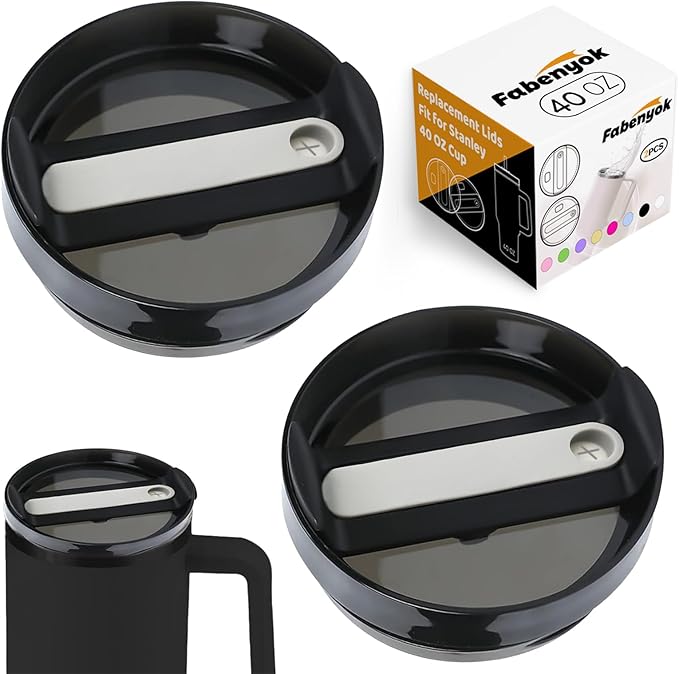 40 OZ Tumbler Lid Replacement Fit for Stanley Cup, 2 Pack Clear Replacement Lids Fit for Stanley Travel Tumbler, Spill Proof Tumbler Covers for Stanley Cup Accessories (Opaque - Black)