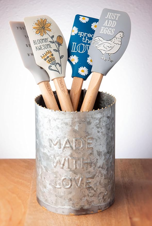 Karma, Silicone Spatula with Wood Handle Heat Resistant, Baking, cooking and Mixing Spatulas, Modern Farmhouse Kitchen Décor, Gift for Chef, Cooks, Housewarming Gift, Bee