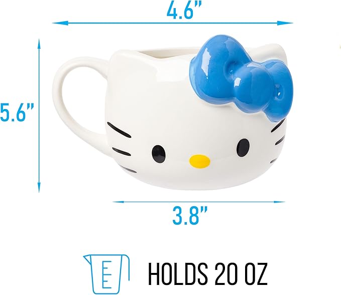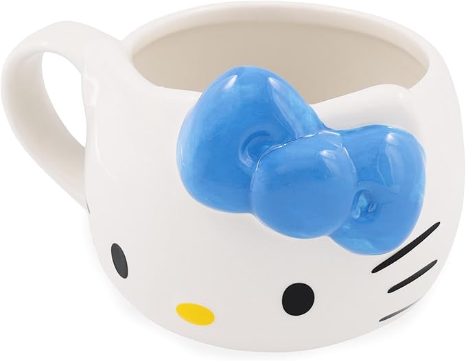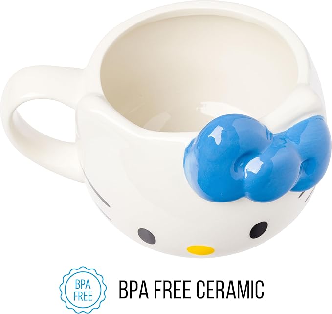 Silver Buffalo Sanrio Hello Kitty Blue Bow Ceramic 3D Sculpted Mug, 20 Ounces