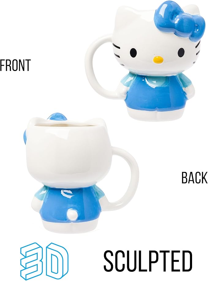 Silver Buffalo Sanrio Hello Kitty Full Body Blue Dress Ceramic 3D Sculpted Mug, 20 Ounces