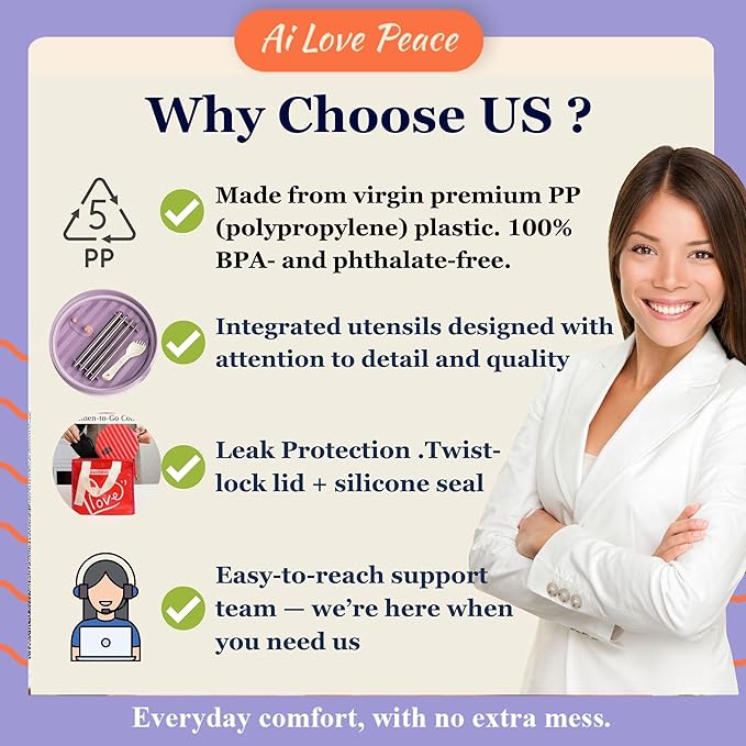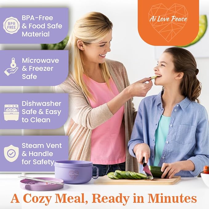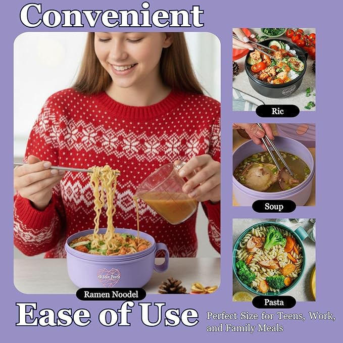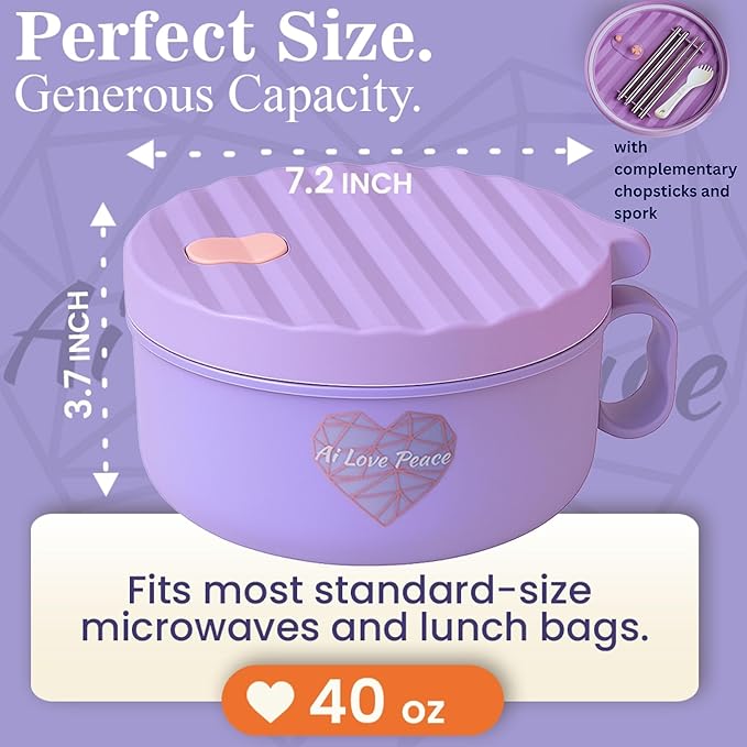 AI LOVE PEACE Ramen Bowl, 40 oz Microwaveable Noodle Cooker for Ramen, Pho, Soup, and Pasta, Dishwasher Safe and Portable, Ideal for Home, Office, Dorm, or Gift (Purple)