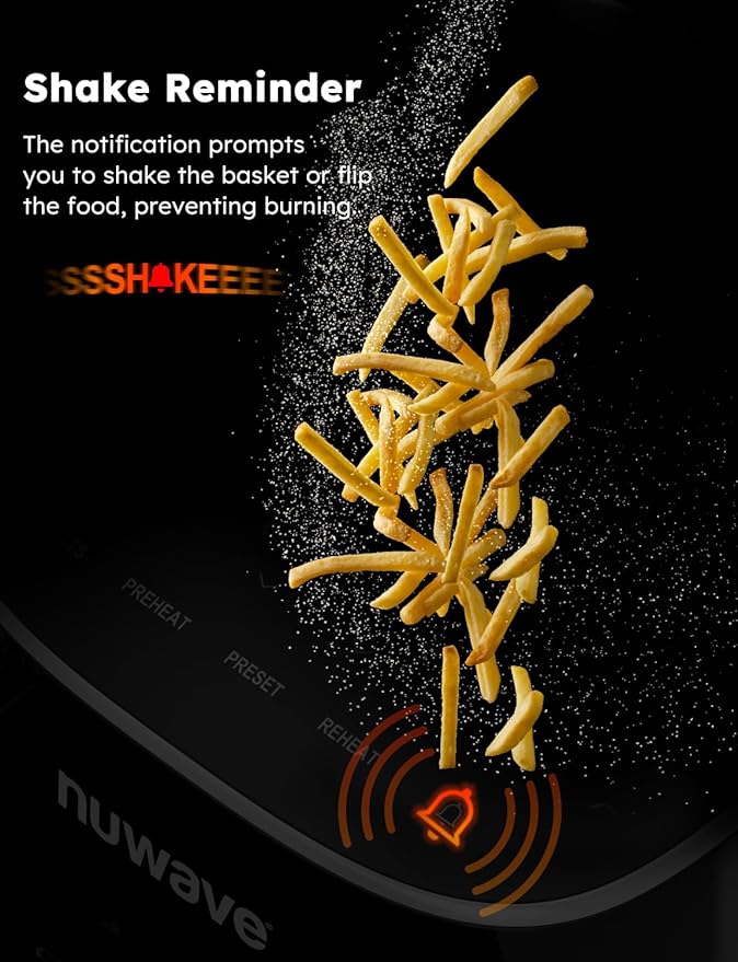 Nuwave Brio Plus 8 Qt Air Fryer, PFAS Free, New & Improved, Digital Touch Screen, Cool White Display, 50°F~400°F in Precise 5°, 5 Cook Functions, 100 Presets & 50 Memory, 3 Wattages 700, 1500, 1800