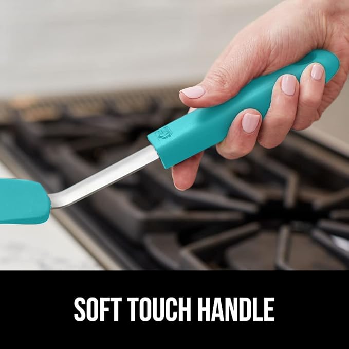 GORILLA GRIP Patented BPA-Free Non-Scratch Spatula, 2 Pack, Heat Resistant Flexible Silicone Head for Nonstick Cooking Pans, Soft Rubber Handle, Kitchen Spatulas for Flipping Eggs, Pancakes, Turquoise