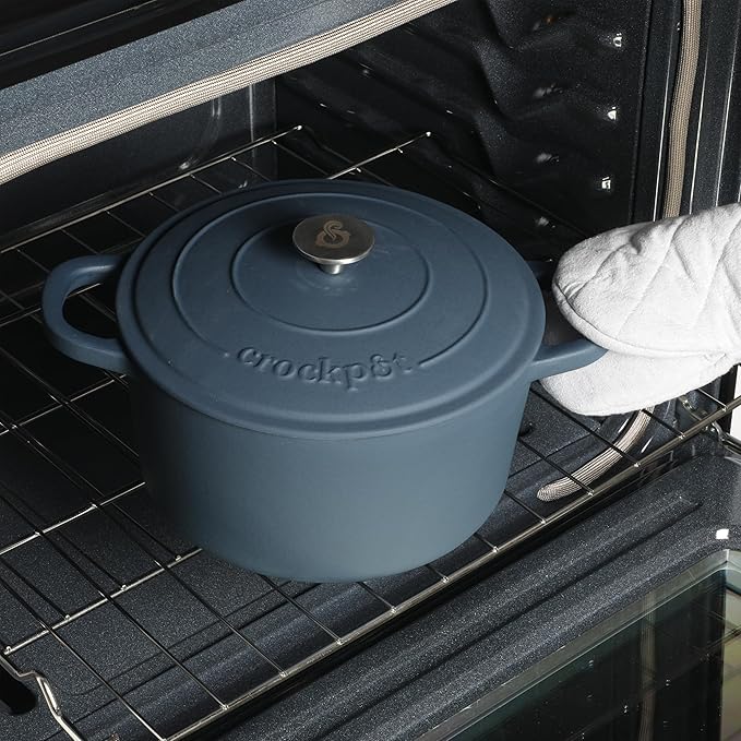 Crock-Pot Artisan 5-Quart Round European Enameled Cast Iron Dutch Oven with Lid – Matte Navy Blue, Durable Oven Safe Cookware