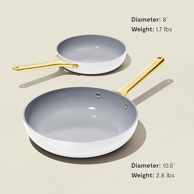Caraway Fry Pan Duo - Nonstick Ceramic Frying Pan (8" & 10.5”) - Non Toxic, PTFE & PFOA Free - Oven Safe & Compatible with All Stovetops (Gas, Electric & Induction) - White