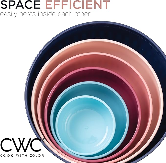 About This Cook with Color 12 piece plastic mixing bowl set - non slip bowls with lids; easy to clean,... Read more