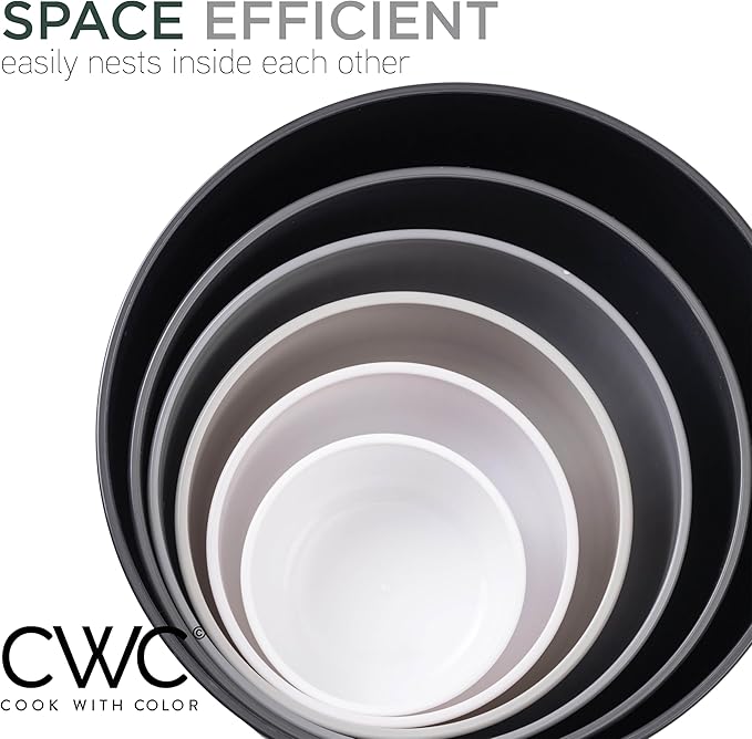 About This Cook with Color 12 piece plastic mixing bowl set - non slip bowls with lids; easy to clean,... Read more