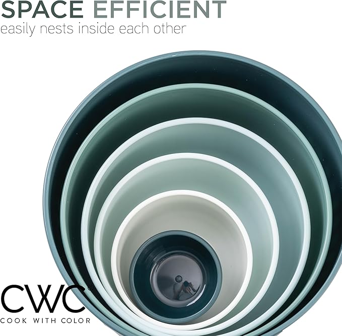 About This Cook with Color 12 piece plastic mixing bowl set - non slip bowls with lids; easy to clean,... Read more