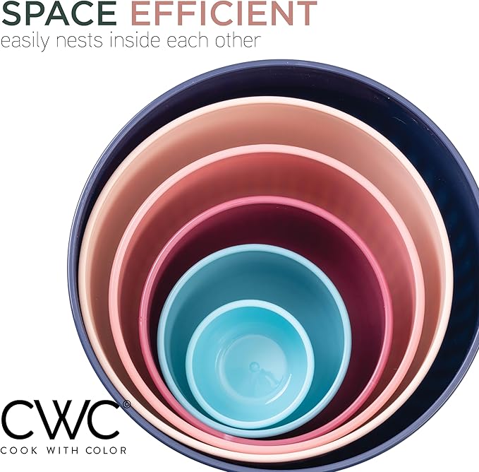 About This Cook with Color 12 piece plastic mixing bowl set - non slip bowls with lids; easy to clean,... Read more