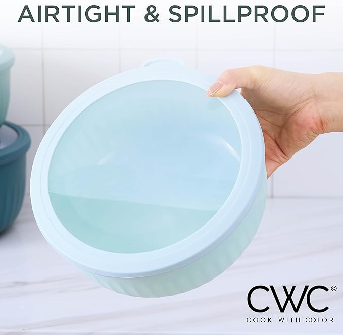 COOK WITH COLOR Prep Bowls with Lids- Wide and Deep Nesting Plastic Small Mixing Bowl Set with Lids, 12 Piece Set - Wide Bowls, Teal
