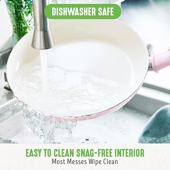 GreenLife Soft Grip Healthy Ceramic Nonstick 18 Piece Kitchen Cookware Pots and Frying Sauce Saute Pans Set, PFAS-Free with Kitchen Utensils and Lid, Dishwasher Safe, Soft Pink