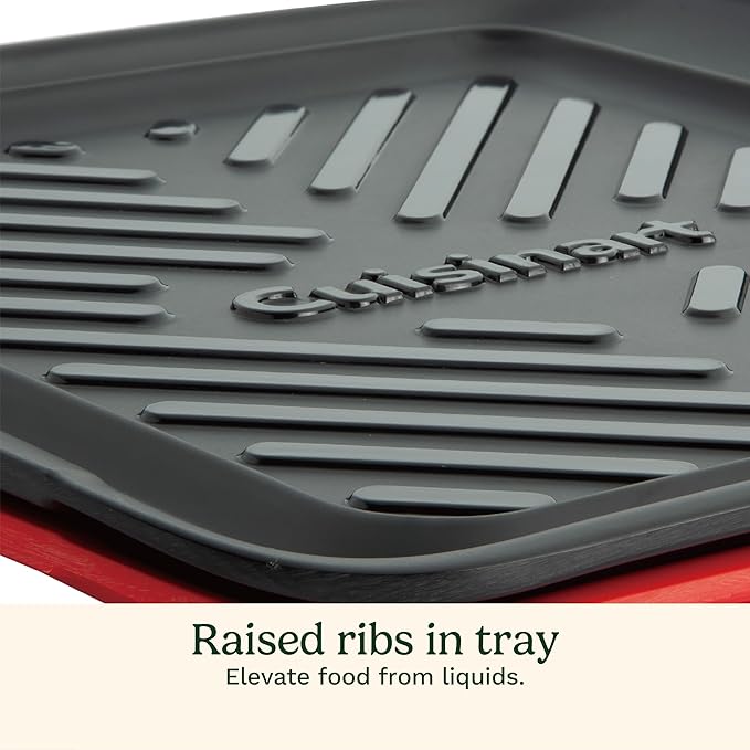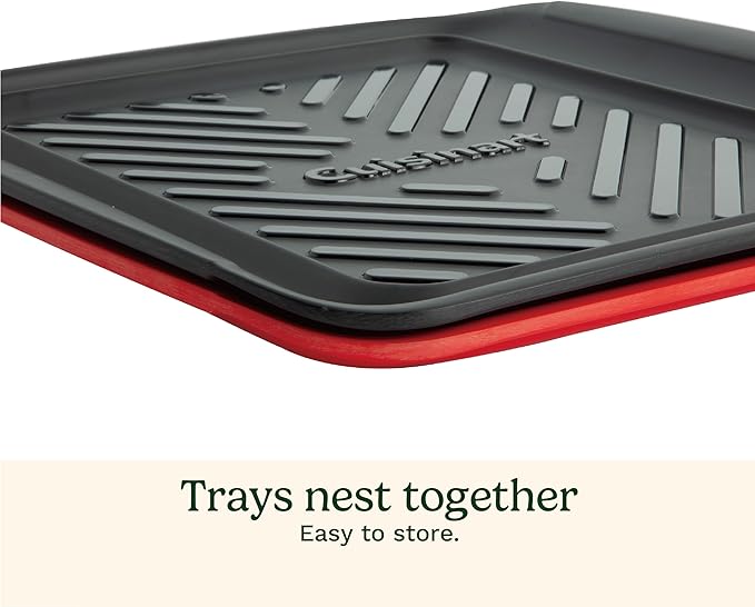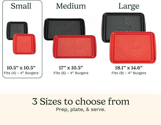 Cuisinart Grilling Prep & Serve Trays, 10.5x10.5 inch Small BBQ Tray Safe for Food Handling, 2 Dishwasher Safe Nesting Trays Black & Red, Perfect Grill Accessories for Cooked & Raw Meat, Fits 4 Burger