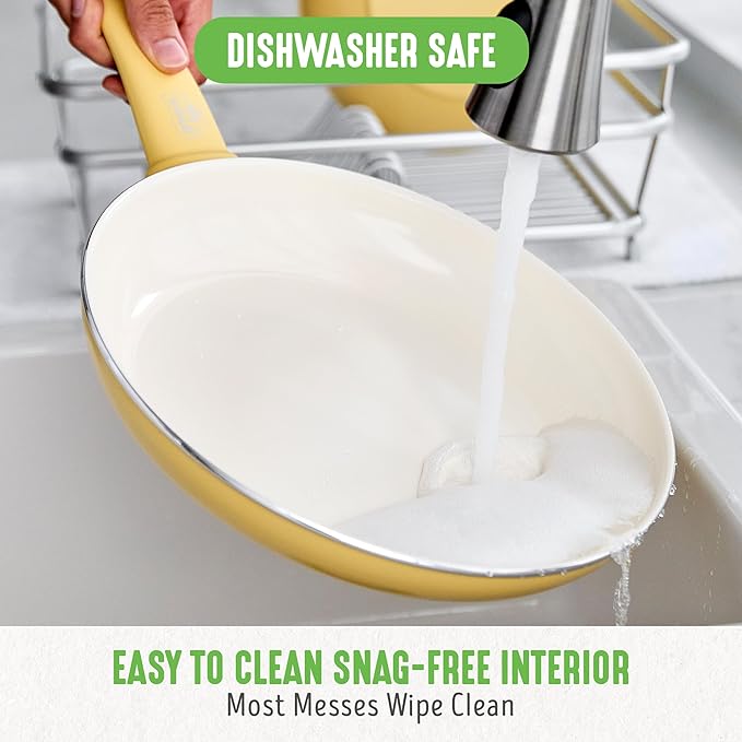 GreenLife Soft Grip Healthy Ceramic Nonstick 18 Piece Kitchen Cookware Pots and Frying Sauce Saute Pans Set, PFAS-Free with Kitchen Utensils and Lid, Dishwasher Safe, Yellow