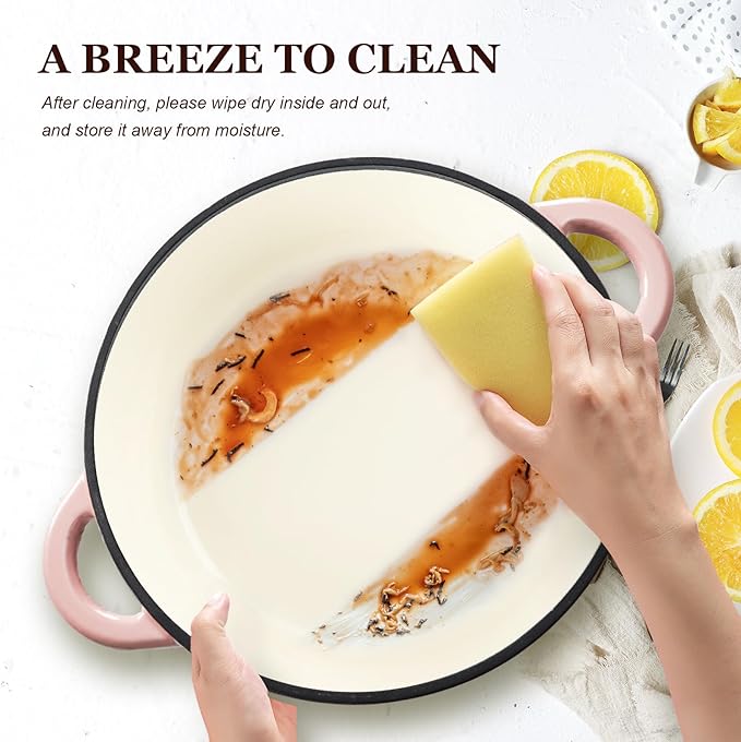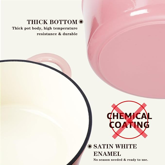 Overmont Enameled Cast Iron Dutch Oven - 5.5QT Pot with Lid Cookbook & Cotton Potholders - Heavy-Duty Cookware for Braising, Stews, Roasting, Bread Baking pink