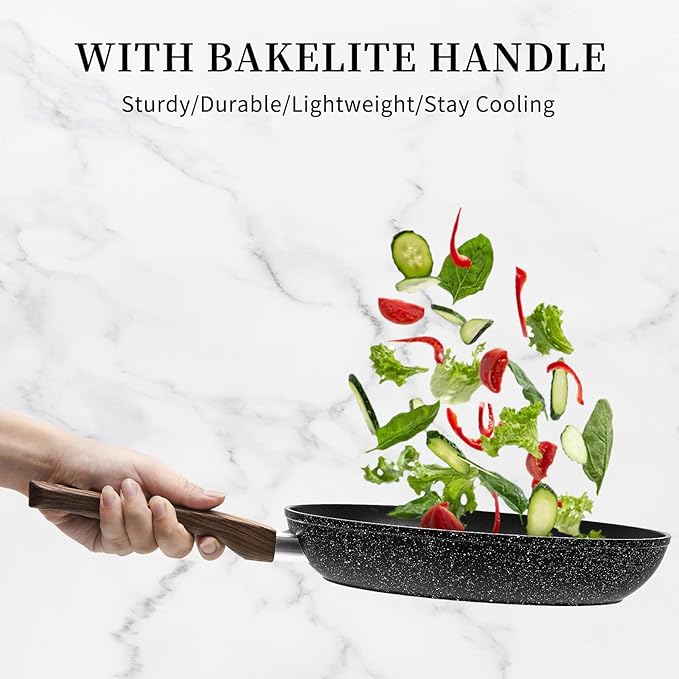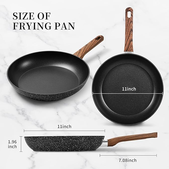 Innwewell 11 inch Nonstick Frying Pan, Non Stick Frying Pan Large Skillet Pan Omelette chef's Pan, Induction Compatible, No Toxic & PFOA Free, Black