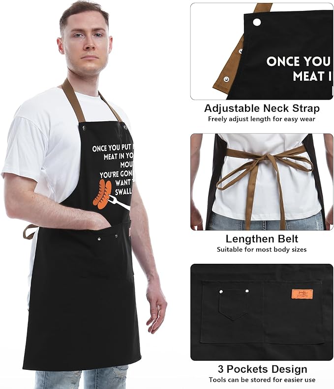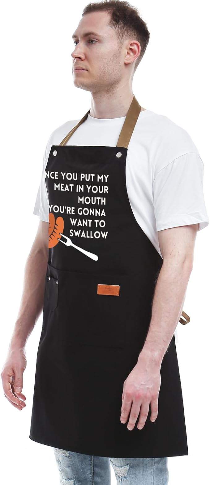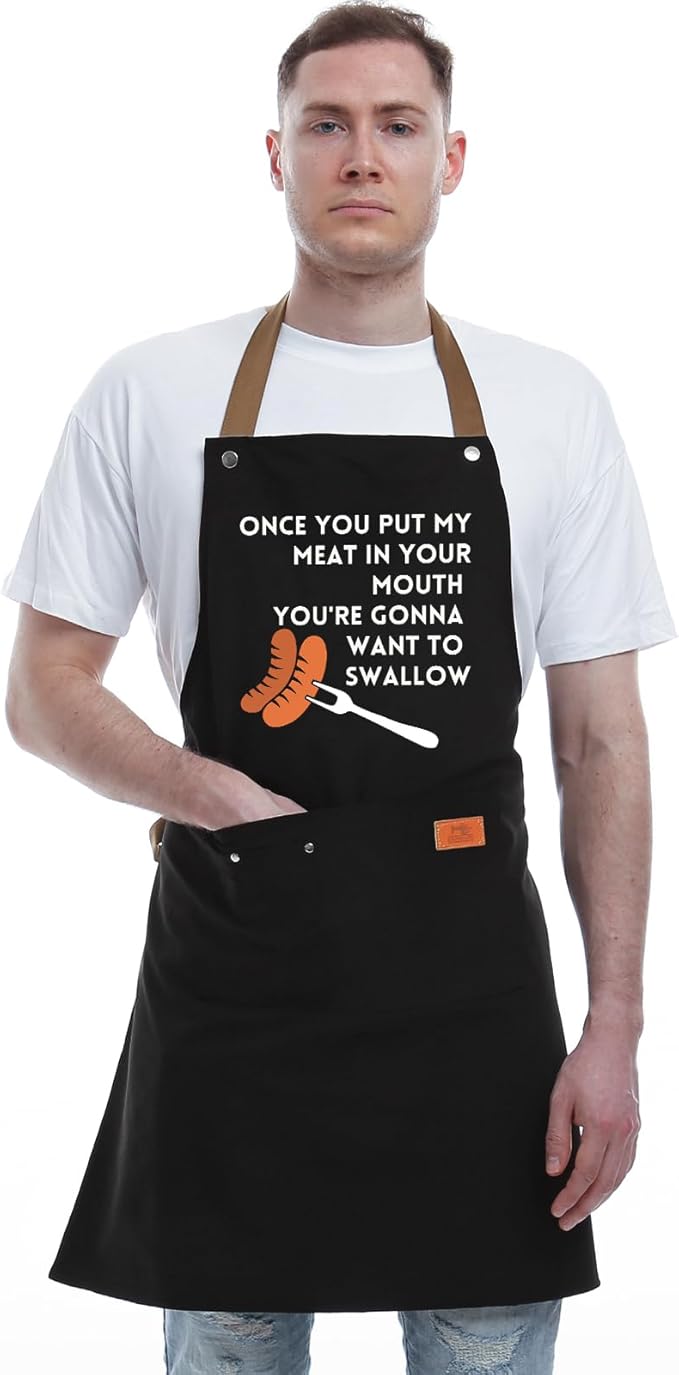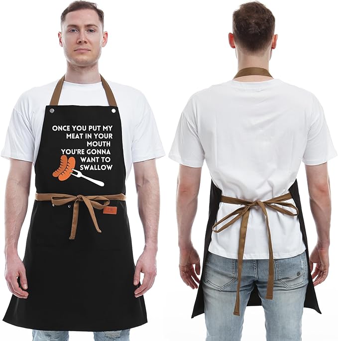 About This Humorous Design: REHAVE Funny gift apron for men feature a hilarious “Once You Put My Meat in Your... Read more