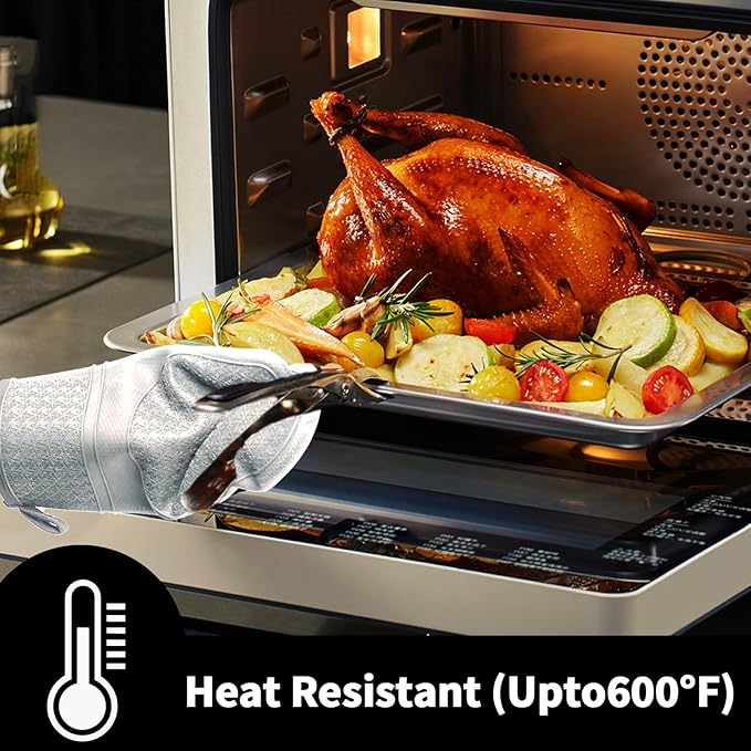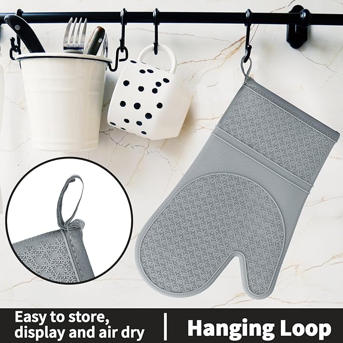 Hovico Silicone Oven Mitts, Heat Resistant 500F Kitchen Mitts 2PCS, 11.6" BPA-Free Soft Baking Gloves, Non-Slip Grip Oven Gloves with Soft Cotton Lining for Kitchen Cooking Baking BBQ - Gray